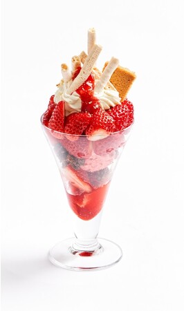 苺を贅沢に使いアイスクリームやシュトロイゼルなど食感と甘みのバランスの良いパフェとなっております!