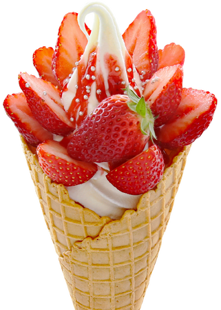 バニラソフトにいちご果肉ソースと千葉県産のいちごをてんこ盛り!