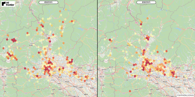 都内外居住者のヒートマップ