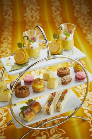 南国のフルーツをふんだんに使った贅沢なスイーツや、生ハムとフルーツコンポートのサンドウィッチなど夏の薫りを感じるアフタヌーンティーセットです。