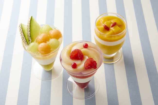 マスクメロンのヴェリーヌ/桃とフロマージュブランのヴェリーヌ/マンゴープリン 各¥594(¥550)