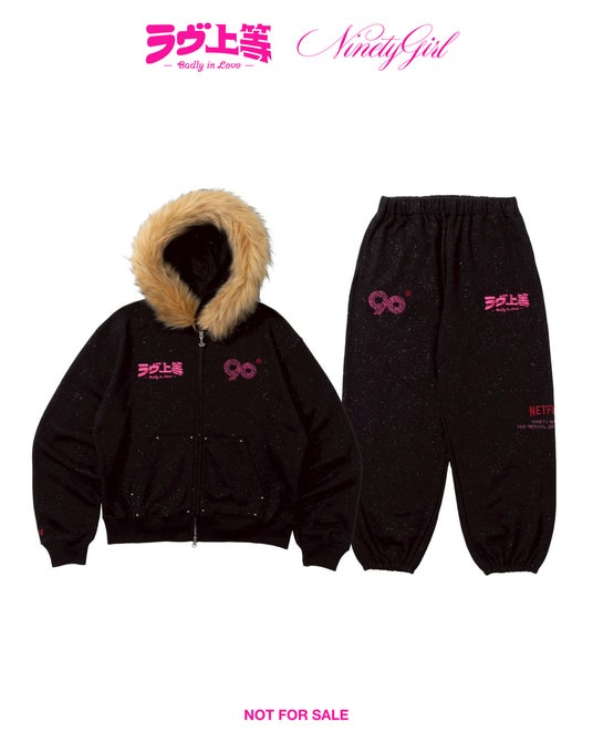 【×ラブ上等 90 Logo Glitter Fur Zip Hoodie】