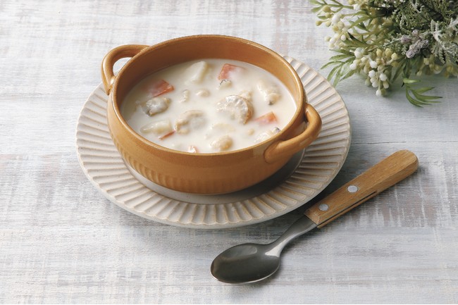 あさりと帆立から旨味をぎゅっと引き出しながら、つぶ貝の歯ごたえを活かして、家庭で作るチャウダーよりも具材感を大事に、食べごたえのある“食べるスープ”を目指しました。野菜やマッシュルームも使用し、栄養バランスのとれる満足感の高いスープに仕上がってます。朝・昼・晩幅広いシーンで食べやすく、老若男女問わずおいしくお召し上がりいただける商品になりました。