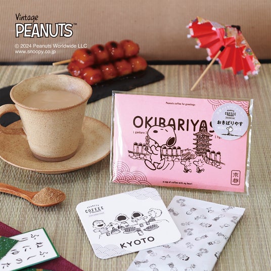 パウダーフーズフォレスト株式会社(本社:愛知県名古屋市名東区、代表取締役 社長 CEO:森永 照久)は、「PEANUTS coffee(ピーナッツコーヒー)」より発売中のメッセージカード付きコーヒー(またはカフェラテ)「PEANUTS coffee for greetings」から、初の地域限定展開となる沖縄・京都限定商品を2024年11月上旬より発売開始しました。