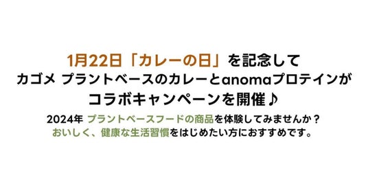 1月22日 待望の「カレーの日」※に、えんどう豆由来のピープロテインブランドanomaと、プラントベース商品を展開するカゴメ株式会社と、2024年最初のコラボキャンペーンを実施いたします。