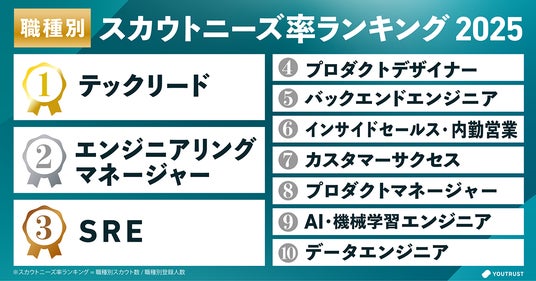 一方2025年は、テックリード、エンジニアリングマネージャーといった「開発組織を率いる人材」が上位を占める結果となりました。背景には、プロダクト開発や事業成長のスピードが求められる中で、「技術力」に加え、