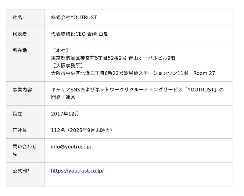 ▶ 採用支援「YOUTRUST TALENT」:https://lp.youtrust.jp/recruiter