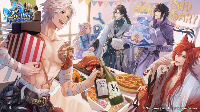 4月10日には、プレイヤーに馴染み深いキャラクターたちが2周年のお祝いケーキと並ぶイラストが公開されました。