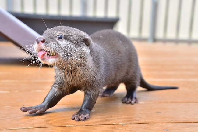 まるい顔でおっとりとしたマイペースな男の子。カワウソトレーナーのお姉さんをよく観察しています。食べることが好きで食欲旺盛です。