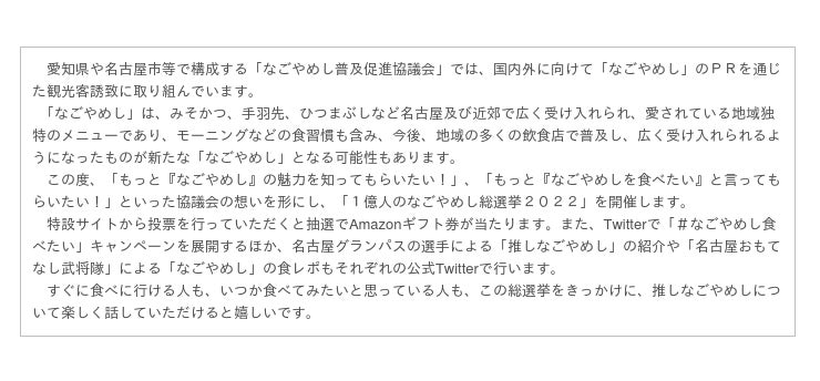 1 「1億人のなごやめし総選挙2022」概要