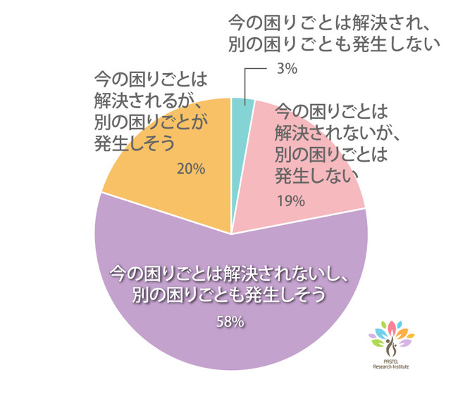 さらに過半数のお母さんは、今の困りごとは解決されないうえ、新しい困りごとも出てきそうだと感じています。