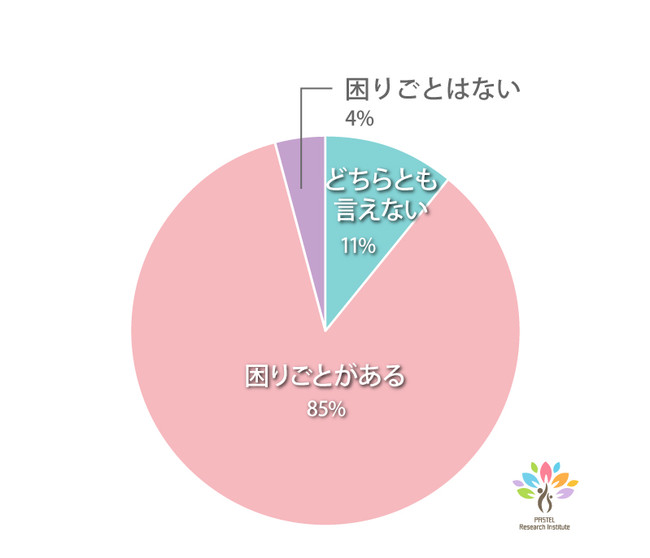 「困りごとはない」と明確に答えたのはたった4%に留まり、85%のお母さんがお子さんの集団生活に明確な困りごとを抱えていることが判明しました。
