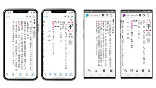『旺文社 辞典アプリ』は、「しおりメモ」や文字サイズ・背景色の変更、画数・部首検索(※『旺文社 漢字典 第四版』および『旺文社 標準漢和辞典 第七版』のみ)などの機能を搭載している辞典ビューワアプリです。1つのコンテンツにつき、最大3台まで利用できるので、自宅学習用と学校用の両方の端末などにダウンロードすることができます。
