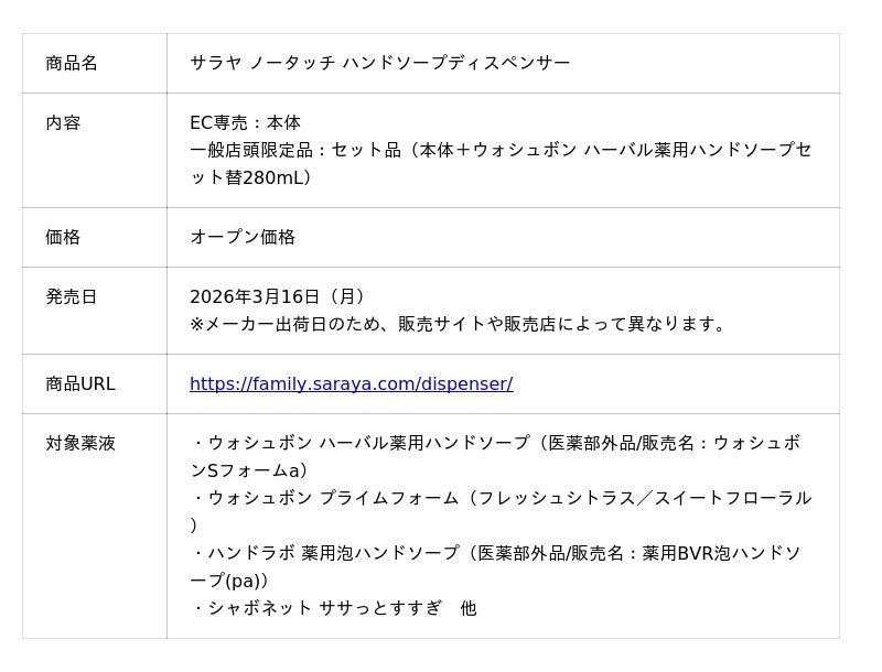 サラヤ株式会社(本社:大阪/代表取締役社長:更家悠介)の「サラヤ ノータッチ ハンドソープディスペンサー」が、Amazon※新着ランキング3部門で1位(2026年4月2日調べ)を獲得しました。