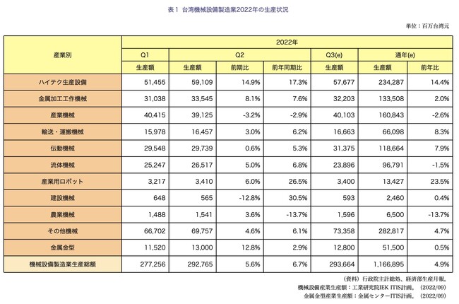 <台湾機械産業の概況と2022年下半期の展望>