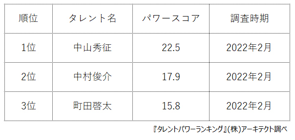 本ランキングは、2022年2月度に実施したタレント調査データ(一部過去実施データ)を利用し、タイトルに応じてランキング形式でまとめたものです。