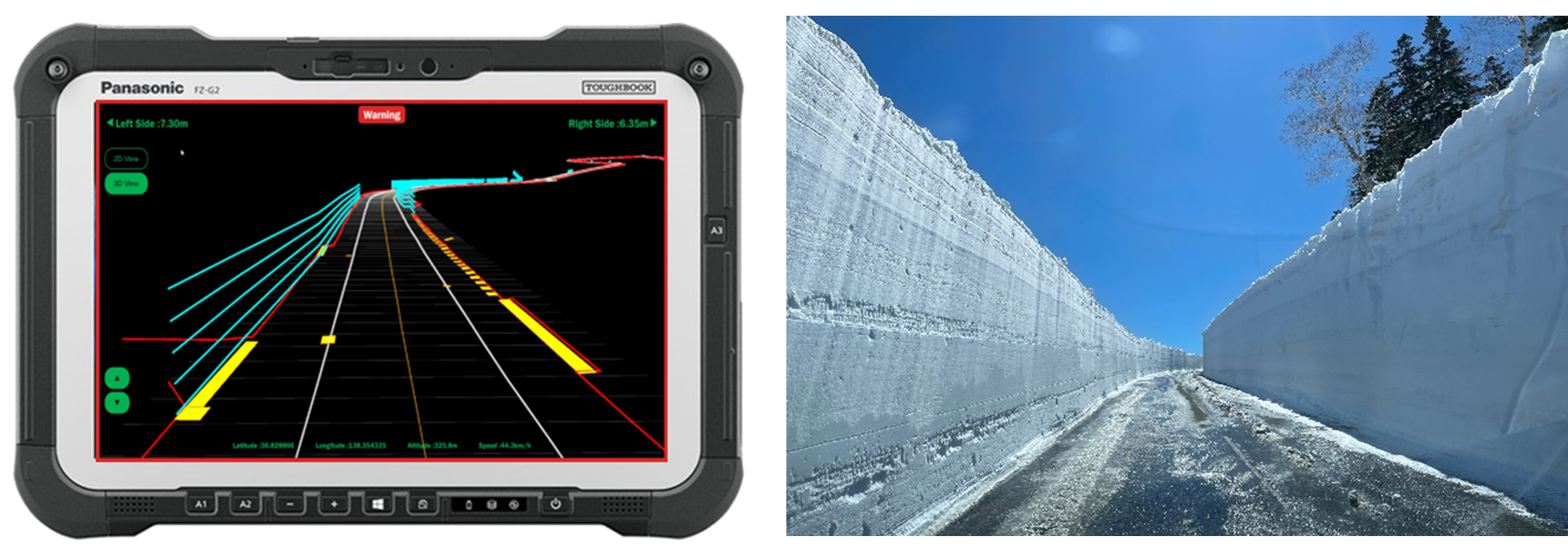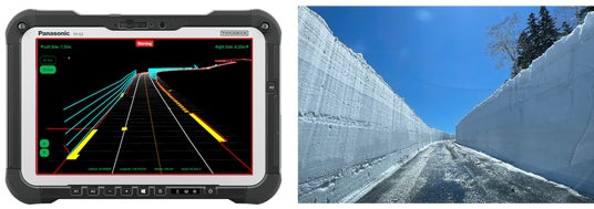 (左)除雪支援システム「SRSS」製品イメージ (右)実際の除雪現場イメージ