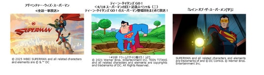 アニメ専門チャンネル「カートゥーン ネットワーク」では、4/18スーパーマンの日を祝して4月19日(土)にスーパーマン関連作品を連続10時間一挙放送!スーパーマン最新TVシリーズ「アドベンチャー・ウィズ・スーパーマン」全話一挙放送の他、人気DCシリーズ「ティーン・タイタンズGO!」からスーパーマン登場回セレクション、長編2作品(デス・オブ・スーパーマン、レイン・オブ・ザ・スーパーメン)を放送します。