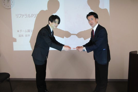 また、入社式ではサプライズ企画として、リファラルプロジェクト(人材紹介プロジェクト)の表彰も行われました。