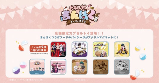 各まんぱくコラボ商品のパッケージデザインがアクリルマグネットになったカプセルトイも登場します。