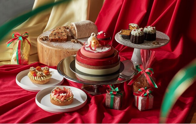 2023年のフォーシーズンズホテル東京大手町のフェスティブテーマカラー「レッド、パウダーピンク、ゴールド」を散りばめた、愛くるしさたっぷりのクリスマスケーキのご予約を2023年10月1日(日)より開始いたします。