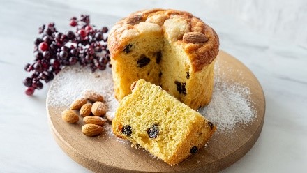 イタリア発祥のクリスマスケーキ「パネトーネ」を1つずつ丁寧にお作りしております。イタリアで愛され続けているレシピを参考に、種つぎ発酵まで約35時間、充分な発酵時間をかけた生地に卵は卵黄だけ、シンプルで余分なものを加えない代わりに手間と時間をかける事で、香ばしい独特の風味と、口どけの良さを生み出しております。