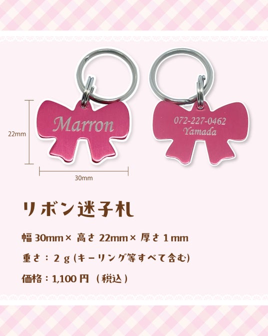 迷子札の型にリボンが新登場♪とっても軽いのでワンちゃんネコちゃんの負担が少ないです!