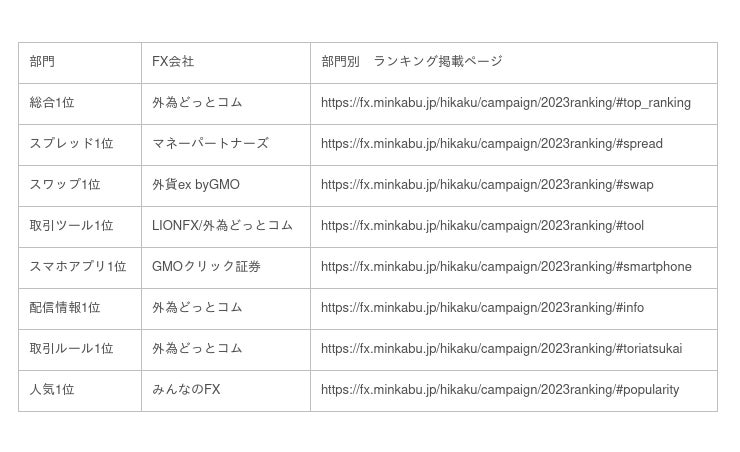 【FX会社比較 部門別ランキング】