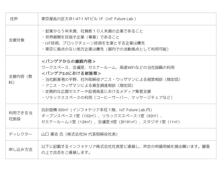 インフォテリアは、今後「パンゲア2.0」で20社程度のスタートアップを受け入れ、事業活動を支援していきます。2年後には10社以上の企業が順調な成長を遂げ卒業していくことを目標にしています。