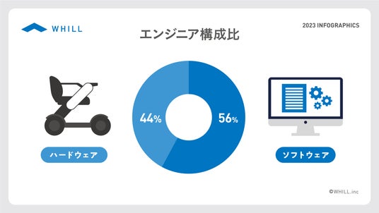 グローバルでのエンジニア構成比はソフトウェアが半数以上を占めます。モビリティ販売に限らず、ソフトウェア開発を通じてモビリティサービスやより快適なWHILLライフ提供に向けて取り組んでいます。