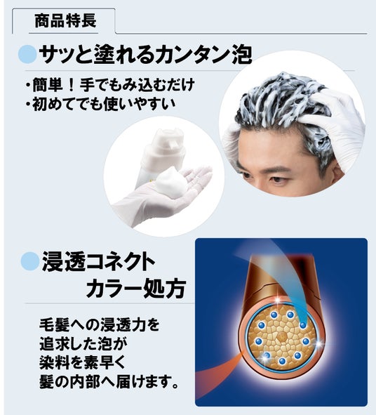 手間なく、ムラなく、きちんと染めるので、「白髪が気になるけど、手間はかけたくない」という男性におすすめです。W色持ち成分できれいな髪色が長持ち。今秋の新色は、重い印象にならず、より自然な仕上がりのカラー。染めた感が出にくく、使用しやすいカラーです。