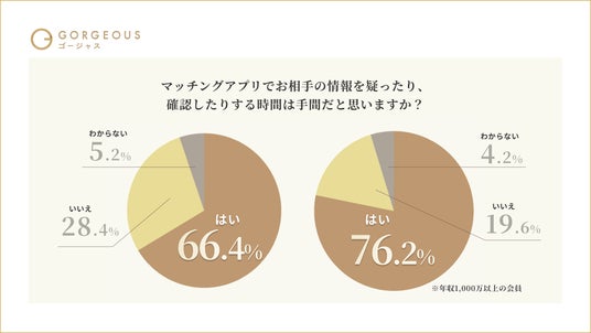 調査の結果、全体の66.4%が「お相手のプロフィールを疑ったり、確認したりする時間は手間である」と回答。特に年収1,000万円以上の層ではその割合が76.2%に達しており、所得が高い層ほど、情報の真偽を確かめる「心理的コスト」を避ける傾向が明らかになりました。
