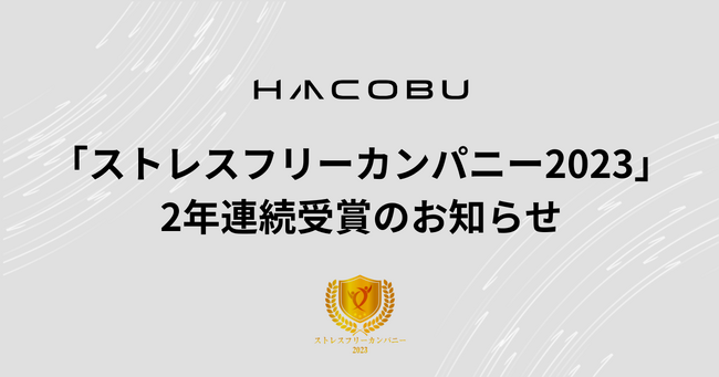 「データドリブン・ロジスティクスが社会課題を解決する」を信念に掲げる株式会社Hacobu(ハコブ、本社:東京都港区、代表取締役社長執行役員CEO 佐々木太郎、以下「Hacobu」)は、株式会社HRデータラボが運営する「ストレスフリーカンパニー表彰委員会」より「ストレスフリーカンパニー2023」として表彰されたことをお知らせいたします。