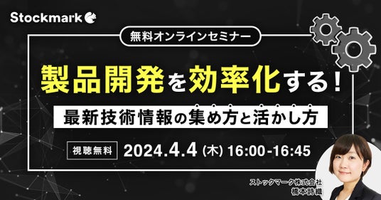 最先端の自然言語処理AIを活用した情報収集サービス『Anews・Astrategy』を提供するストックマーク株式会社(以下、「当社」)はオンラインセミナー『製品開発を効率化する!最新技術情報の集め方と活かし方』を4月4日(木) に開催致します。▼オンラインセミナーの詳細と視聴登録はこちら▼