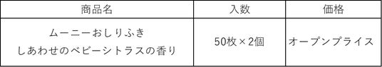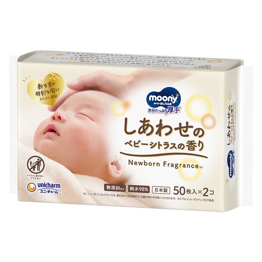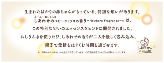 そこでこのたび、親子で愛情をはぐくむ時間をより豊かなものにすることを目指し、「新生児だけの特別な香り」を配合した『ムーニーおしりふき しあわせのベビーシトラスの香り』を、全国で発売します。