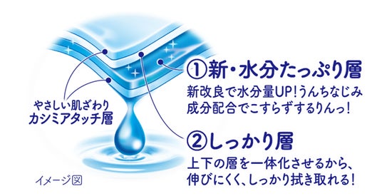 ・「新・水分たっぷり層」により、こすらずにやさしい拭き取りを実現します。
