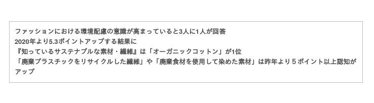 また、『価格が高くても環境・社会にいいものを選ぶ』という方が、2020年は計40.4%であったのに対し、2021年は計46.3%となりました。前年度より5.9ポイントアップする結果となっています。前年より、ファッションについて、環境に対する配慮の意識が高まっているという結果もありましたが、実際に選ぶものも、環境・社会にいいものを選ぶ方が増えているようです。