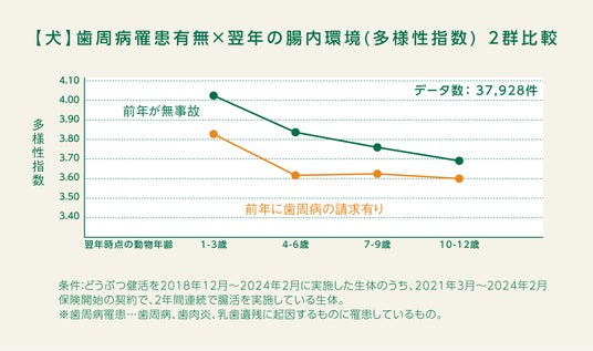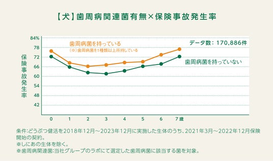 ※1 歯周病関連菌:アニコム損保の保険金請求データとどうぶつ健活(腸内フローラ測定検査)データを用いて当社グループのラボが選定した、歯周病罹患と関係があると考えられる細菌20種。
