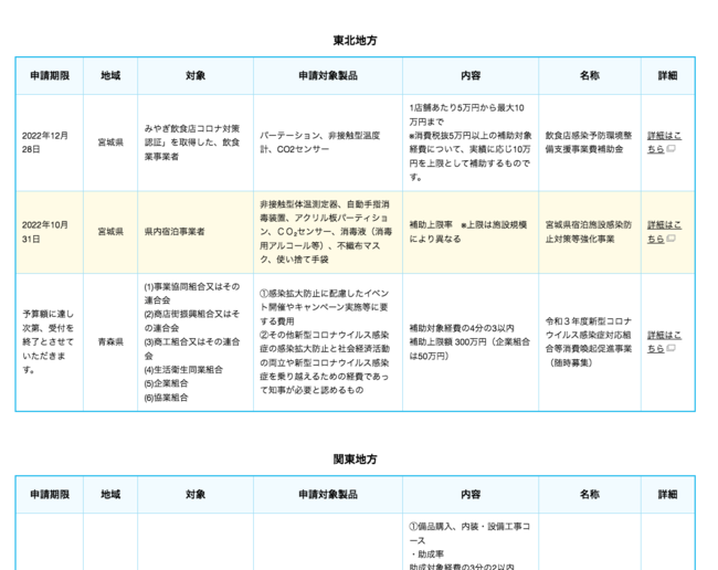 自社特設サイト「コロタツ」では、全国各地の感染症対策グッズの助成金・補助金最新情報を掲載しています。助成金・補助金情報の掲載サイトは多数ありますが、当社は感染症対策グッズを取り扱う会社として、助成金・補助金の情報だけでなく、実績のある製品まで記載しています。
