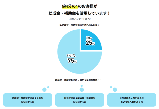 2021年年末に実施した自社アンケート調査によると、当社の25%のお客様が感染症対策グッズの購入に助成金・補助金を使用していることが判明しました。