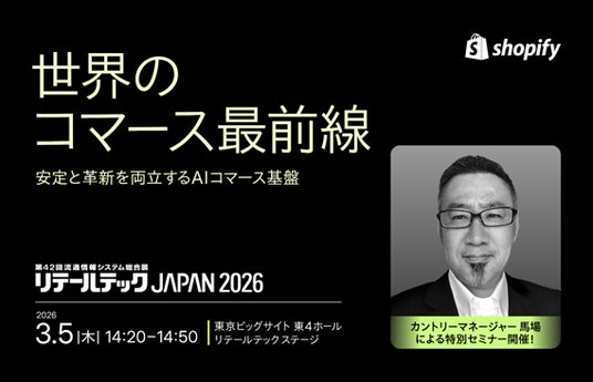 エージェントコマースの進展を受け、今後は具体的な実行が重要となります。Shopify Japanは、2026年3月3日(火)から6日(金)に東京ビッグサイトで開催される「リテールテックJAPAN 2026」に出展し、小売事業者に向けてAI時代の実践的な指針を提示します。