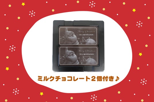 さらに、紅茶ブランドのロゴと可愛らしいサンタのイラストがプリントされた、特別なパッケージに包まれたチョコレートを2個お付けしました。厳選されたカカオ豆を使用した、株式会社モアザンチョコレート製の高品質なチョコレートとなっています。紅茶とチョコレートの絶妙な組み合わせは、リラックスしたひとときを演出するのにぴったりです。