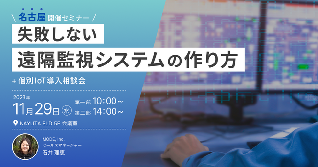 今回のセミナーでは、MODEがご支援している実際の事例を中心に、遠隔監視導入のポイントをご紹介いたします。またセミナー終了後には、皆さまのIoTに関するお困りごとや事業課題まで幅広いご相談をお受けする個別IoT導入相談会を実施いたします。
