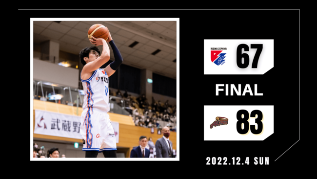 2022年12月4日(日)に開催されましたBリーグ第10節【ライジングゼファーフクオカvs.越谷アルファーズ】において“福岡67-83越谷”の結果となりましたことお知らせいたします。