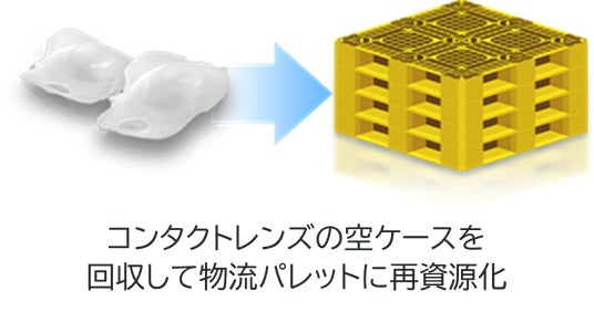 本活動にご賛同いただいている眼科やコンタクトレンズ販売店等に回収ボックスを設置し、メーカー問わず使い捨てコンタクトレンズのブリスターを回収。収集されたブリスターはリサイクル事業者により再資源化され、物流パレットとして製品化されます。収益は、海洋ごみ問題解決に向けて活動している一般社団法人JEANに全額寄付しています。