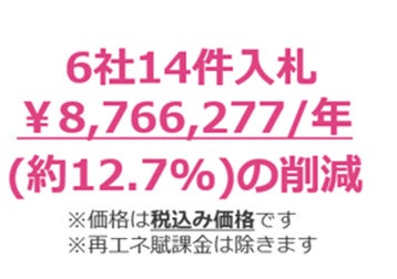 坂戸市では、電力価格の高騰に伴う料金体系の複雑化により、従来の入札プロセスでの電力調達業務が難しくなっていましたが、今回リバースオークションを行った結果、計6社から14件の入札があり、再エネ化だけでなくコスト削減も実現することができました。