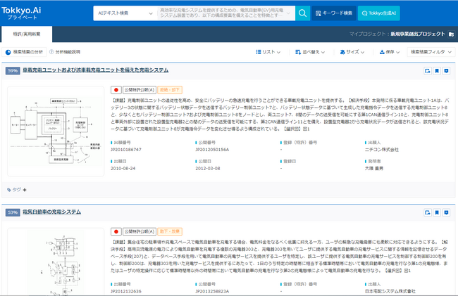 導入効果: AIによって生成された特許文案を、さらにプラットフォーム上でAI検索することで、その特許が市場にどのように適応し得るかを評価できます。この検索を通じて、類似の既存特許、市場のトレンド、競合他社の動向などを把握し、自社の特許戦略をより効果的に調整できます。
