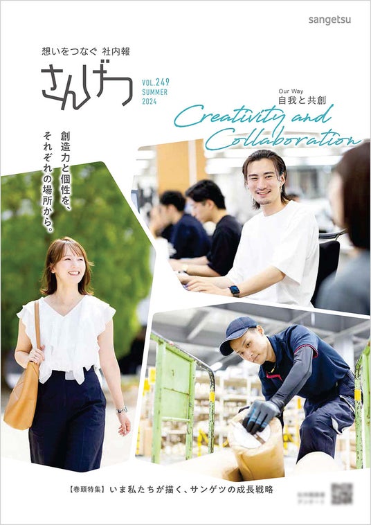 社内報「さんげつ」は、「社員の心の通い合い」を目的として1988年に創刊されました。現在は、“想いをつなぐ社内報”というコンセプトのもと、会社をもっと好きになってもらうことを目的に、年4回発刊しています。社員の仕事や想いにフォーカスし、「会社と社員」「人、チーム、組織」「今の自分と未来の自分」それぞれの想いをつなぐことで、より一体感を得られるコミュニケーションツールへとブラッシュアップを図っています。