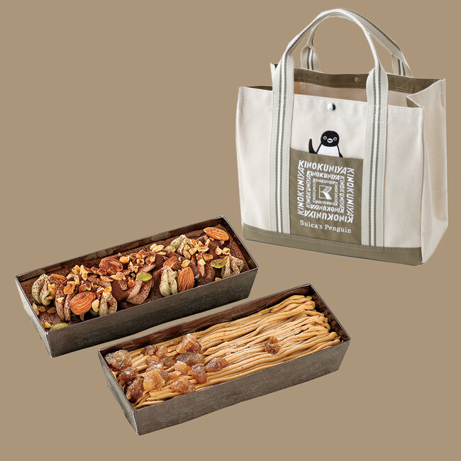 商品詳細:紀ノ国屋 大人のモンブランと木の実ショコラケーキセット(Suicaのペンギン ランチバッグ)【冷凍】