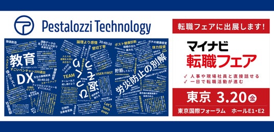Pestalozzi Technology株式会社(本社:東京都新宿区、代表取締役社長CEO 井上 友綱 以下ペスタロッチという)は2026年 3月20日(金)に東京国際フォーラムにて開催される「マイナビ転職フェア 東京」に出展することをお知らせいたします。